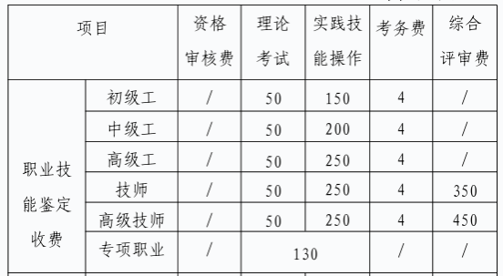 1.以上高级工合计费用包含培训费和认定费。